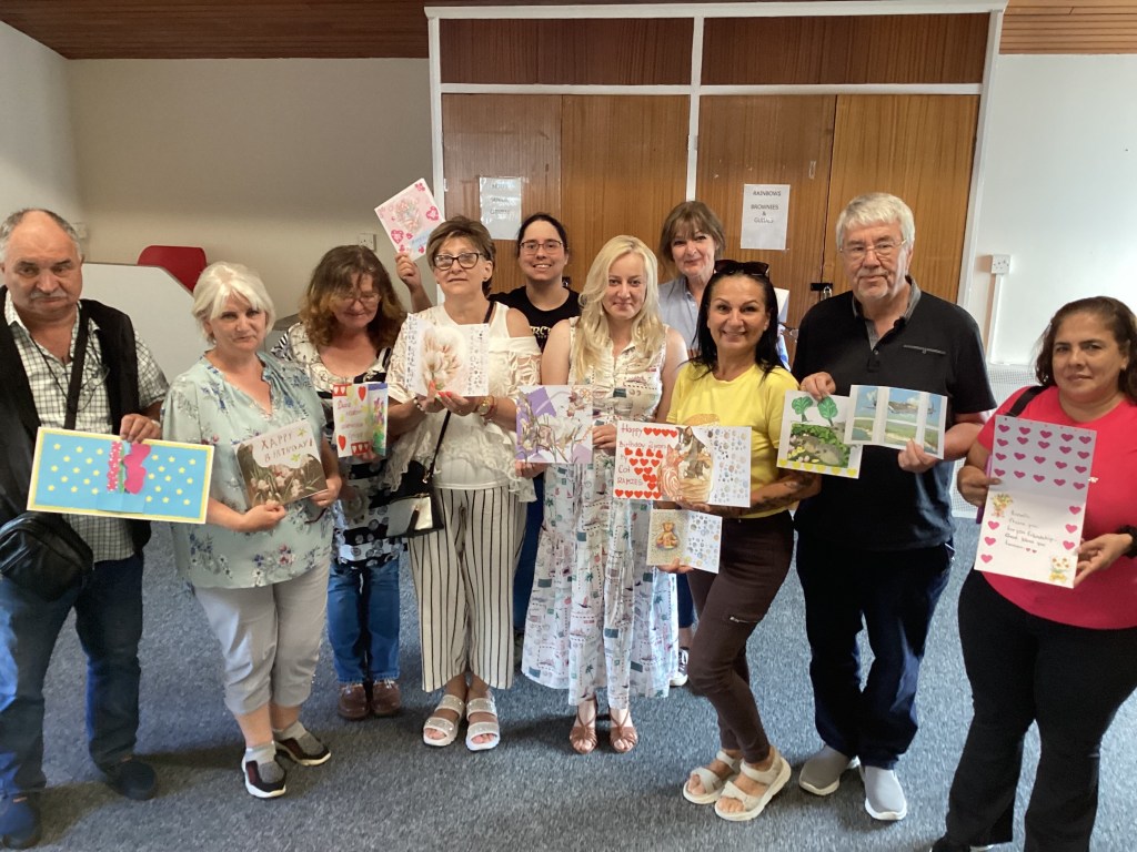 Llanelli Art Society spent a lovely afternoon in Y Plas Felinfoel carrying out a Workshop for the residents. This was led by Committee member Katy Lewis. A lot of fun and laughter was had by all and some beautiful cards were made, some to celebrate VE Day. ๐๐
