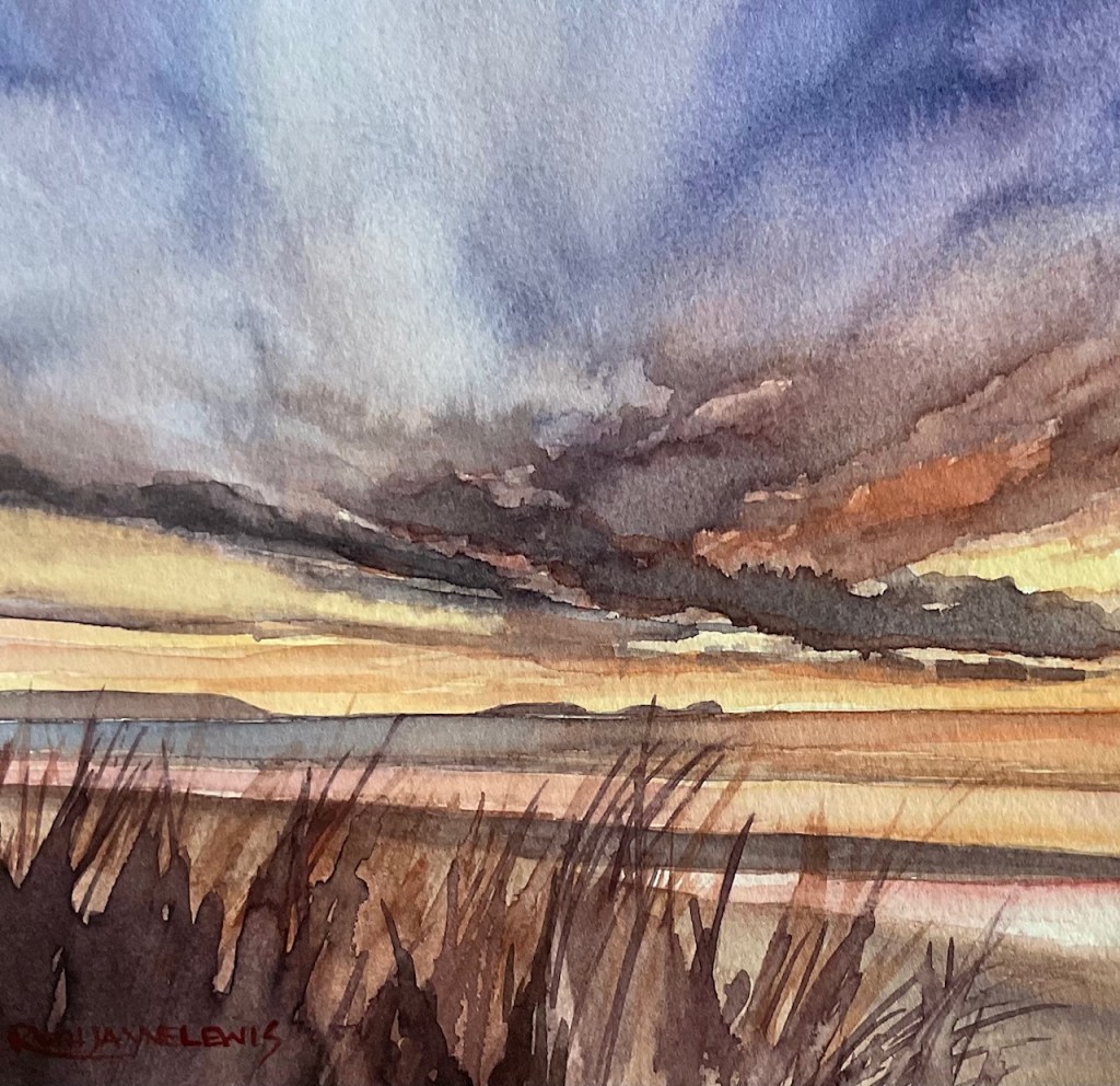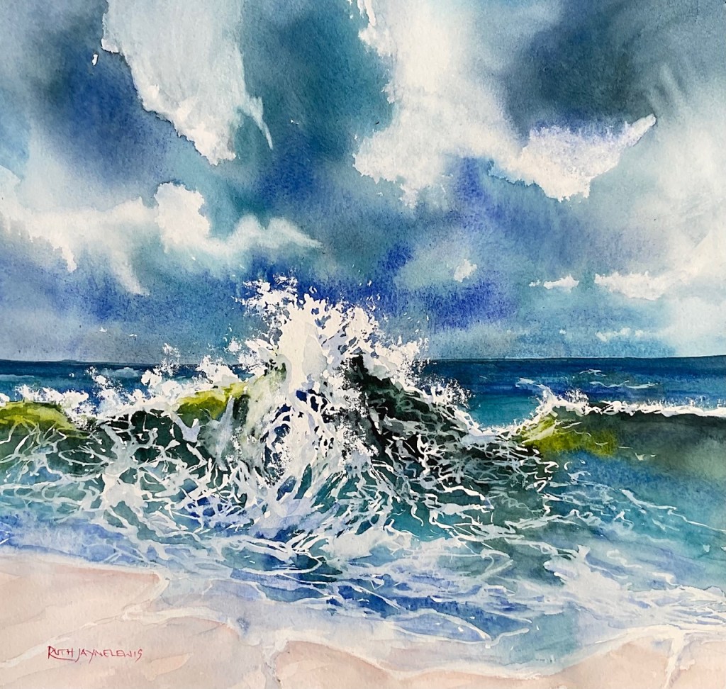 Ruth specialises in watercolours and mixed media in various subjects and techniques. Painting mainly in landscapes and seascapes, she experiments with reactions of water and colour to attain the effects of light, shadow, texture and atmosphere. She paints en plein air with fellow artists and is a member of the UK Plein Air and participates in their Gower Paint Out Week.