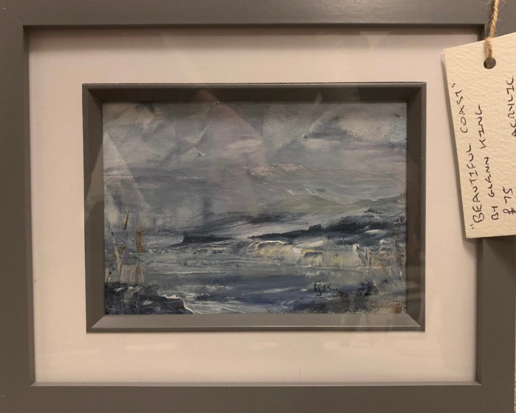 He is drawn to the beauty of our sea and landscapes, fortunate to live in a semi-rural location close to the sea in the village of Pembrey. Glenn likes to capture some of this beauty and the ever changing atmosphere of the sea and land in his semi abstract style of painting using a variety of mediums and tools. He enjoys getting immersed in the artwork, feeling the energy, sense and atmosphere of the places as he makes marks during the painting process. Most of his paintings are created in his art studio at home. Glenn also enjoys producing art with five fellow local artists on a regular basis, which helps inspire, motivate and enhance his artistic journey